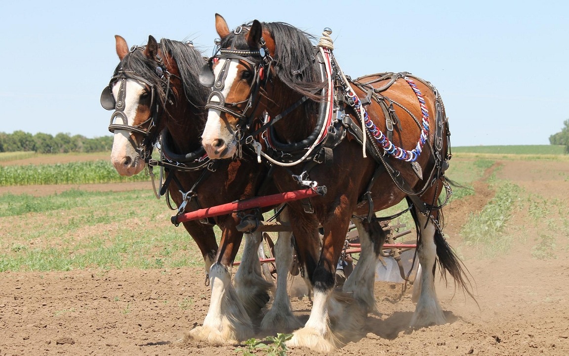 Originating from Scotland, Clydesdales were traditionally used in agriculture and for hauling coal and heavy loads. Today, they are also used for farm work, logging, and as carriage horses, admired for their appearance and stability, often seen in parades and events.